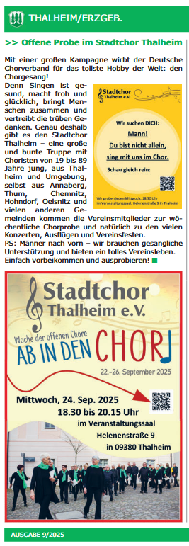 Im August und September erschienen Artikel im Thalheimer Stadtanzeiger: