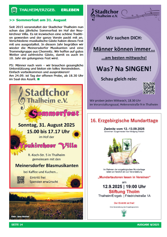 Im August und September erschienen Artikel im Thalheimer Stadtanzeiger: